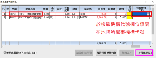 --於「檢驗機構代號」欄位輸入『在地院所醫事機構代號』