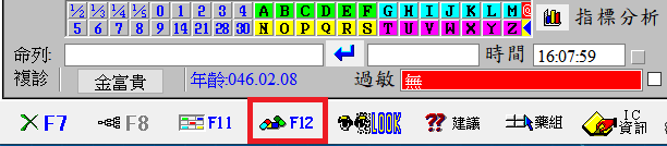 ● 於「F3診療作業」畫面下方按下『F12』或於『4藥品資料』新增醫令代碼