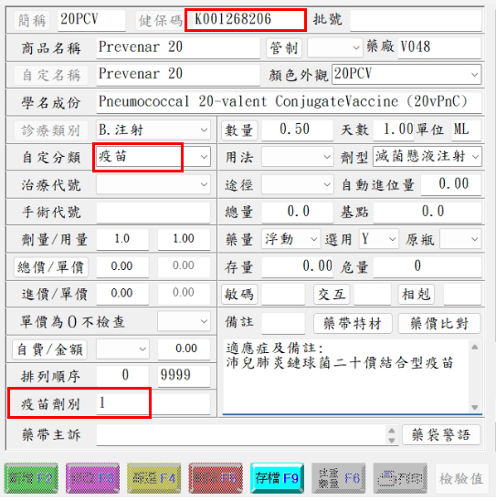 新增沛兒肺炎鏈球菌二十價結合型疫苗藥品代碼為「K001268206」