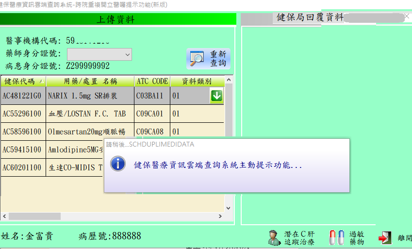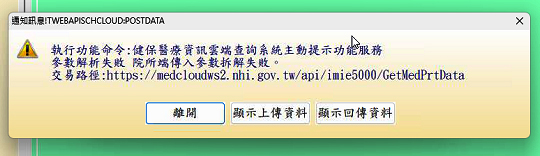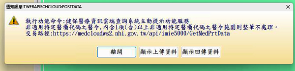 *出現以下顯示訊息表示使用健保醫療資訊雲端查詢系統主動提示功能..(WebAPI).