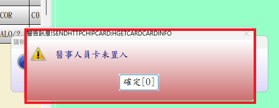 執行查詢作業時需同時置入個案健保卡及醫事人員卡!若不符合要求時會跳出訊息