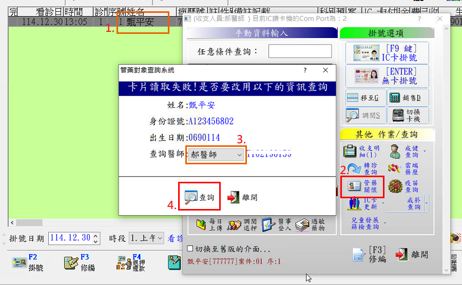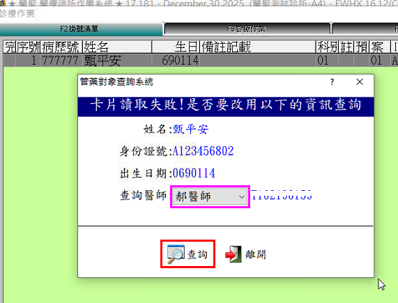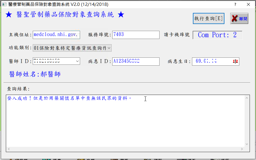 【舊版1.0】掛號查詢個案是否為保險對象特定管制用藥關懷名單對象軟體操作方式