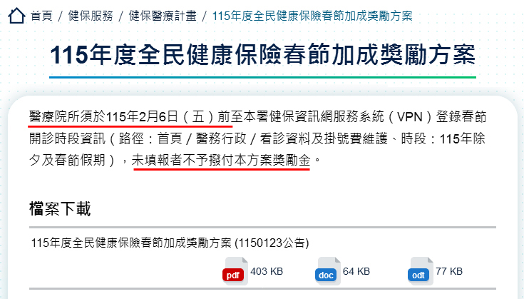 公告檔下載:115年度全民健康保險春節加成獎勵方案.pdf