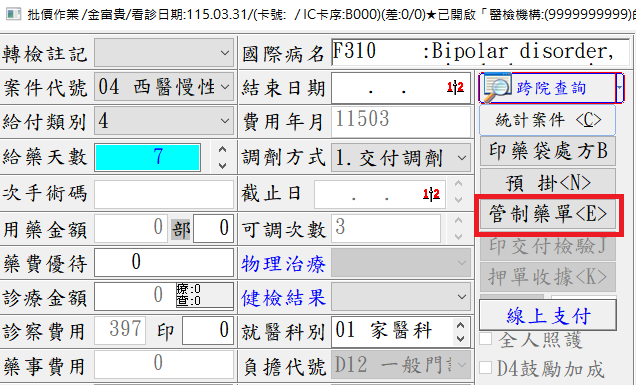 處方有開立1~3級管制藥品,但「管制藥單」項目呈灰色無法點選,如何排除