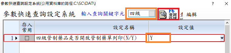 於「四級管制藥品是否開放管制藥單列印(N/Y)」右方設定值改「Y」再按下「離開」即可。
